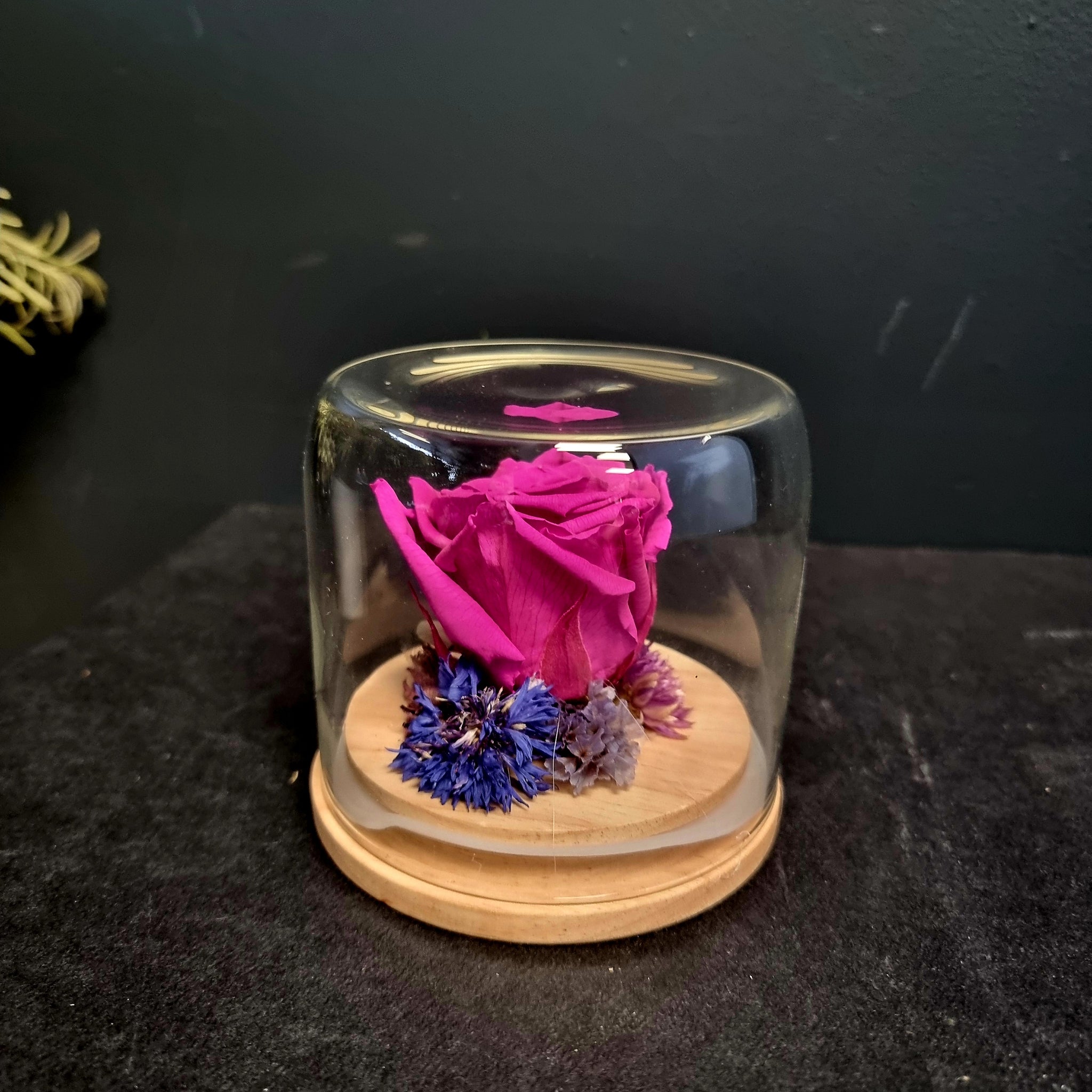 Elegant flower domes showcasing a perfectly preserved rose. Each piece is one-of-a-kind, thoughtfully arranged by our skilled florists, so no two are exactly alike. What you receive may differ slightly from picture.
